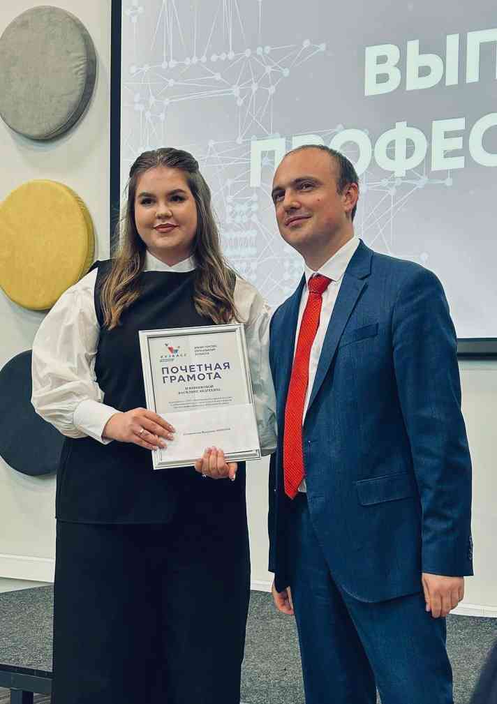 Молодой преподаватель Василина Андреевна Плотникова была отмечена Почётной Грамотой Министерства образования Кузбасса.