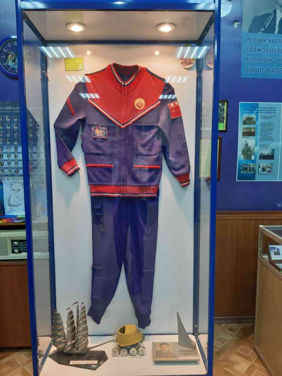 Ребята увидели личные вещи космонавта, фотографии Ю.А. Гагарина и Б.В. Волынова, фото Звездного городка 60-х годов прошлого века, космическую еду в тубах и костюм космонавта СССР, переданные в музей семьей космонавта. В школе сохранилась даже настоящая парта времен ВОВ. Наши умудрились и за нее присесть. Студентам было интересно подержать в руках перьевые ручки, тетрадки с промокашками, учебники послевоенных лет.